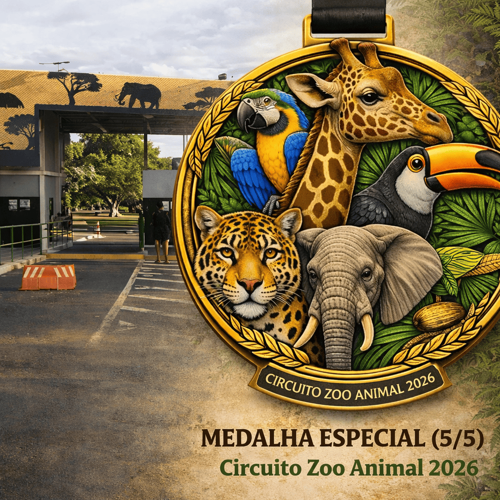 🏅 MEDALHA ESPECIAL (5/5) – Ao completar as 5 etapas oficiais do Circuito Zoo Animal 2026, o(a) atleta garante a exclusiva Medalha Especial do Circuito, símbolo de comprometimento, superação e respeito à natureza.